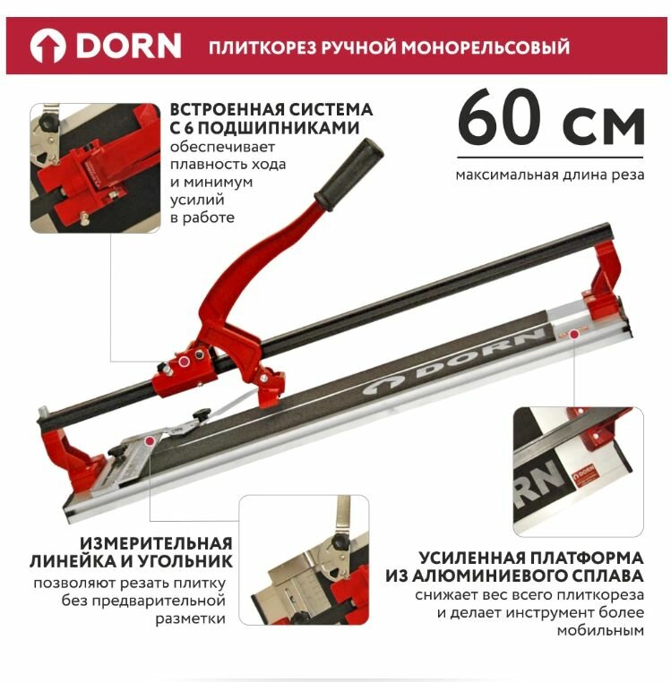 Плиткорез монорельсовый DORN DTC PROFI ручной 60 см интересное: