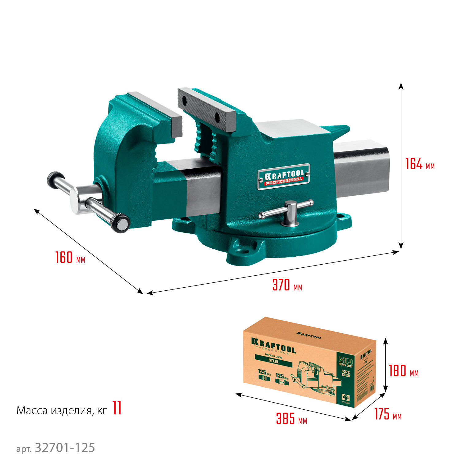 Стальные слесарные тиски KRAFTOOL STEEL, 32701-125