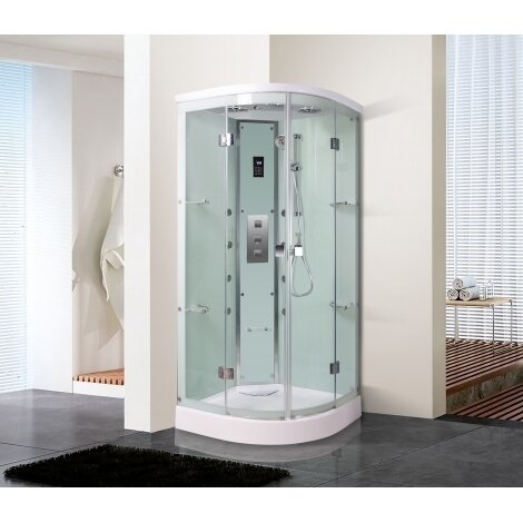 | Плюсы: | Передние стенки выполнены из прочного стекла 8 мм. Эффективный гидромассаж. Верхний тропический и ручной душ. |