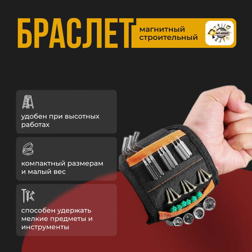 | Дополнительная информация | Строительный магнитный браслет на руку для саморезов, шуропов, сверл |