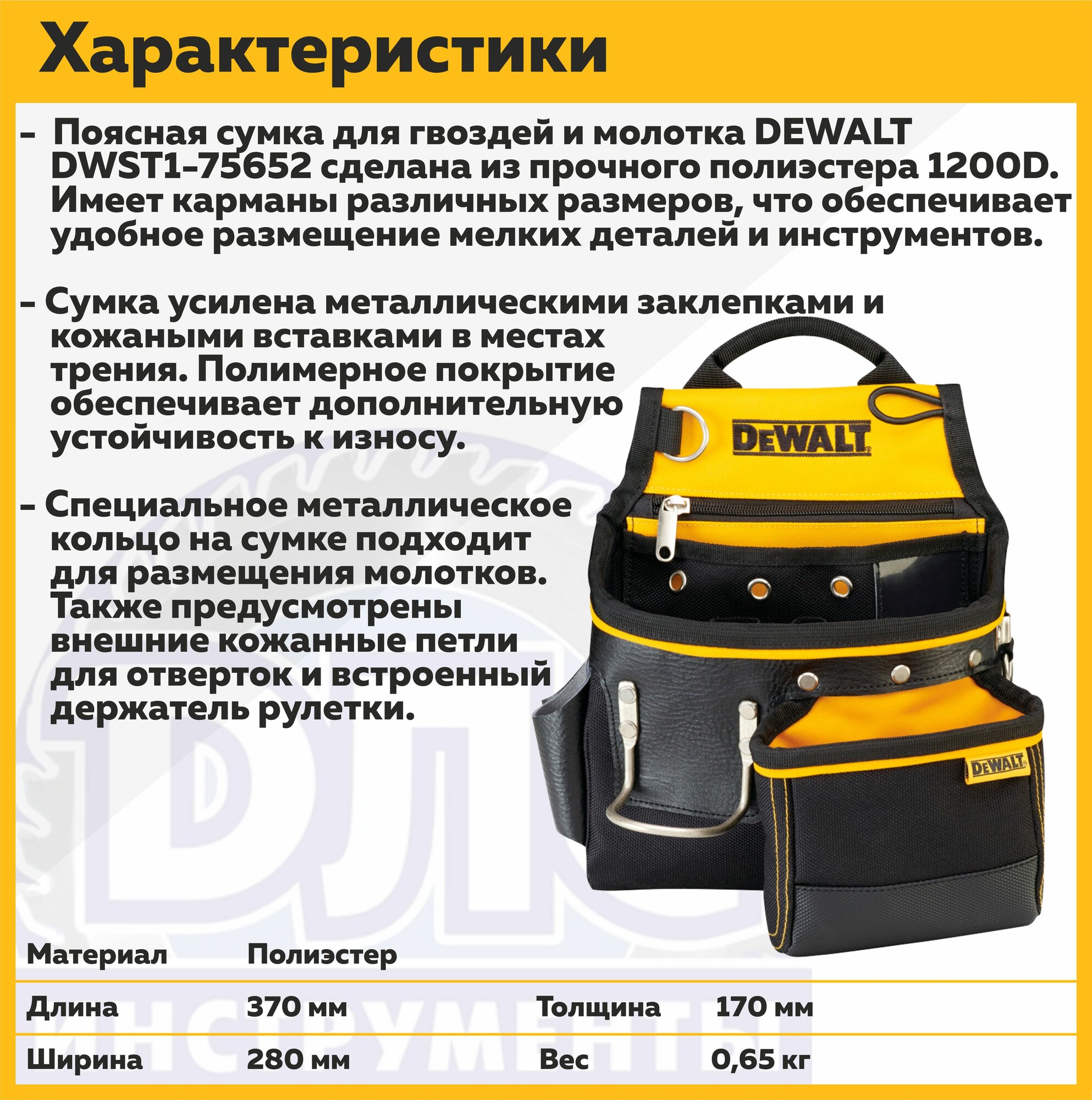 Сумка поясная DeWalt для гвоздей и молотка DWST1-75652 DWST1-75652 .