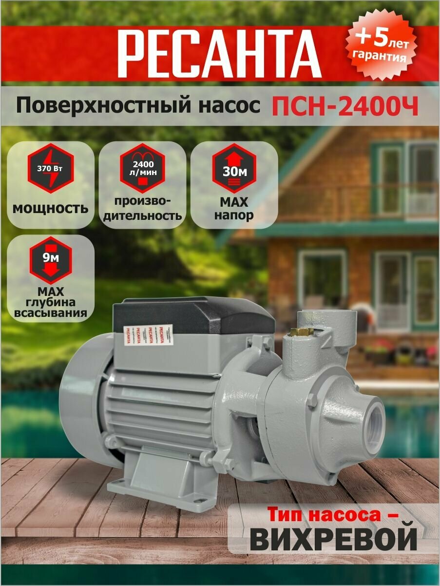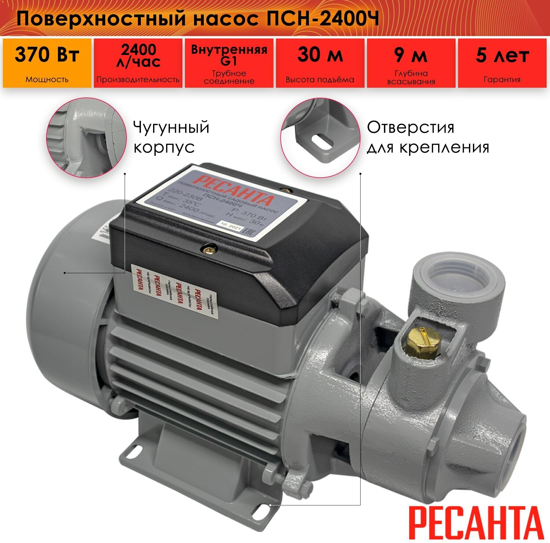 Поверхностный насос Ресанта ПСН-2400Ч(самовсасывающий, 40 л/мин, чугун)