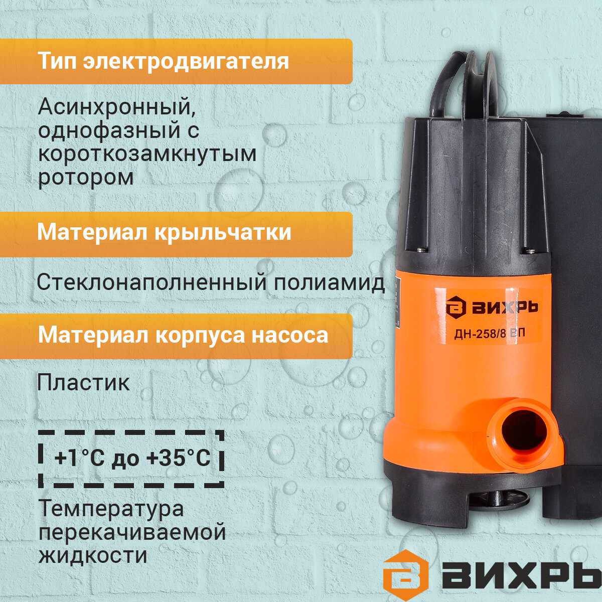 Дренажный насос Вихрь ДН-258/8 ВП, дренажный [68/2/13]