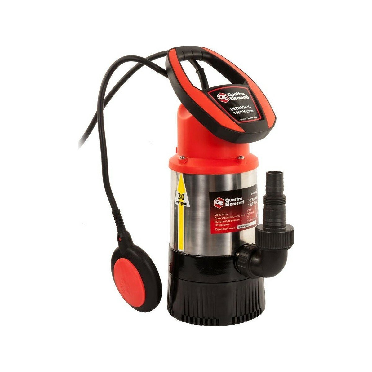 Дренажный насос QUATTRO ELEMENTI Drenaggio 1000 H Inox (900 Вт, 5500 л/ч, для чистой, 30 м, 7,75кг,