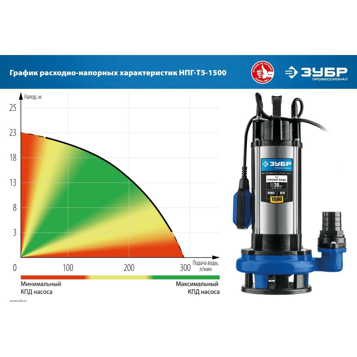 ЗУБР Профессионал НПГ-Т5-1500 насос дренажный с большим напором, 1500 Вт