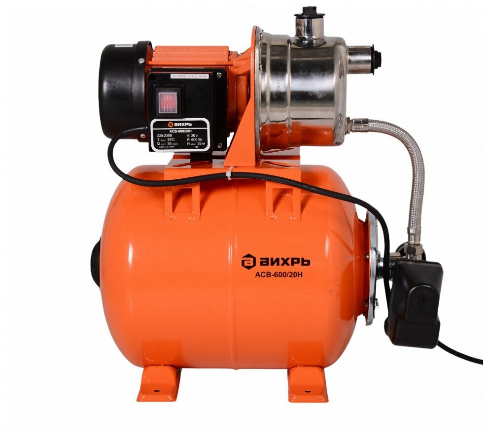 Автономная станция водоснабжения для дома и дачи АСВ-600/20Н Вихрь ( 600 Вт, напор 35 м, 55 л/мин, гидроаккумулятор 20 л, глубина всасывания 9 м)