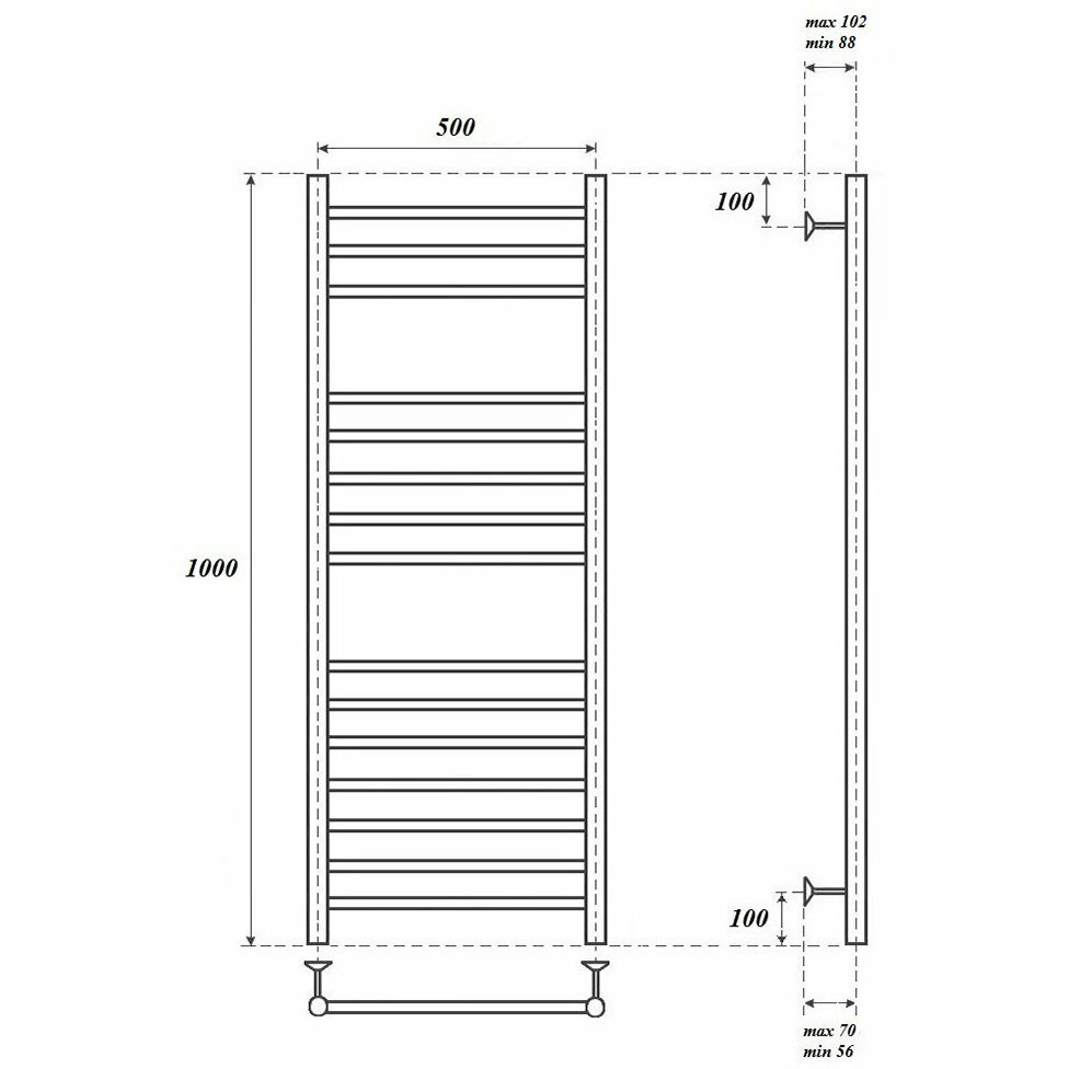 Полотенцесушитель водяной 1000х532 Point Серия 10 П15 PN10150S