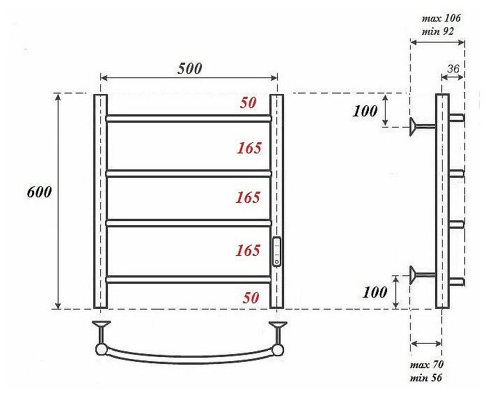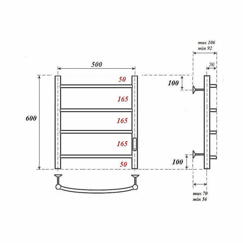 Полотенцесушитель электрический 500x600 POINT Афина (PN04856 П4) диммер справа