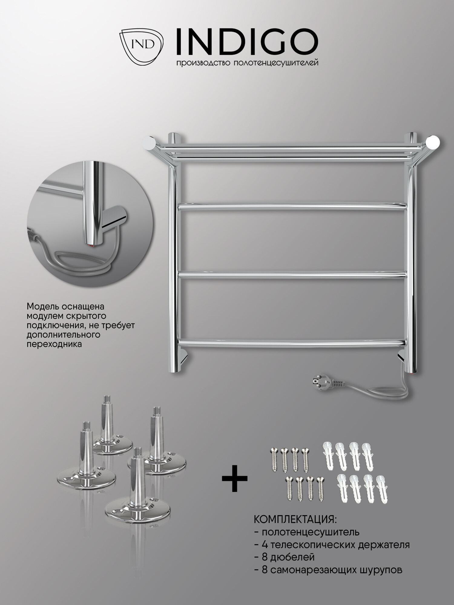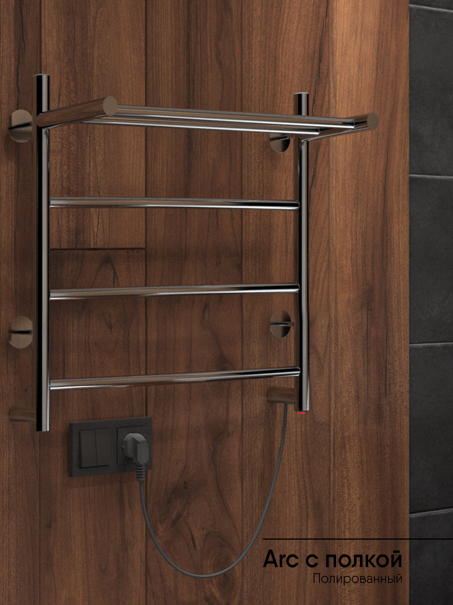 Полотенцесушитель Arc с полкой электрический 50/50 скрытый монтаж, универсальное подключение Полированный INDIGO