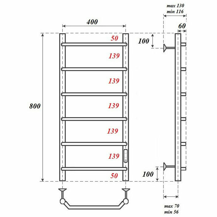 Point Полотенцесушитель электрический 800х432 диммер справа Point Серия 06 П6 PN06848