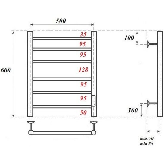 Полотенцесушитель электрический 600x532 диммер справа Point Аврора П6 PN10856BR