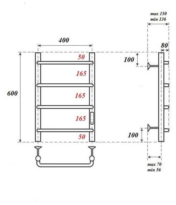 Полотенцесушитель электрический 600x432 диммер справа Point Ника П4 PN08846