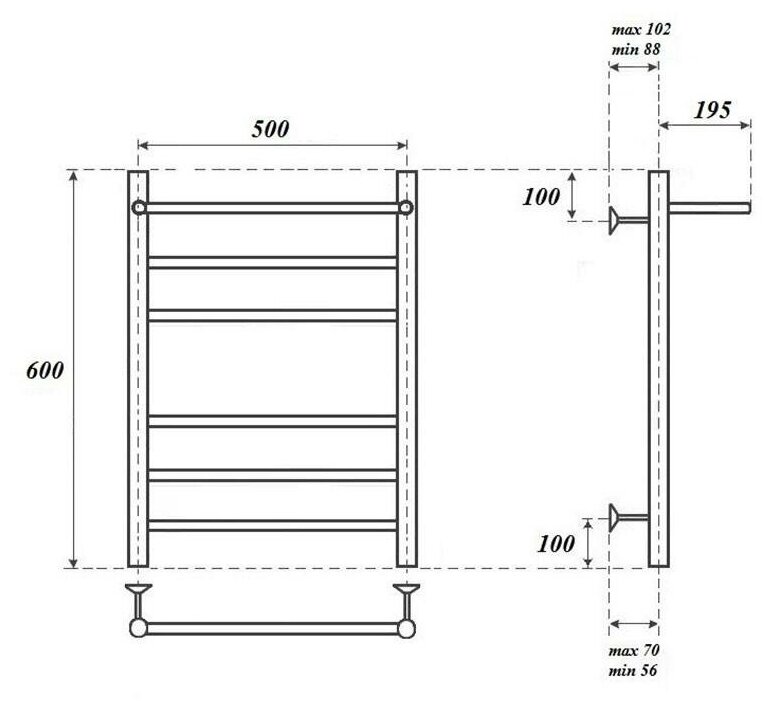 Водяной полотенцесушитель Aquanet Mauro(г2) 800x500