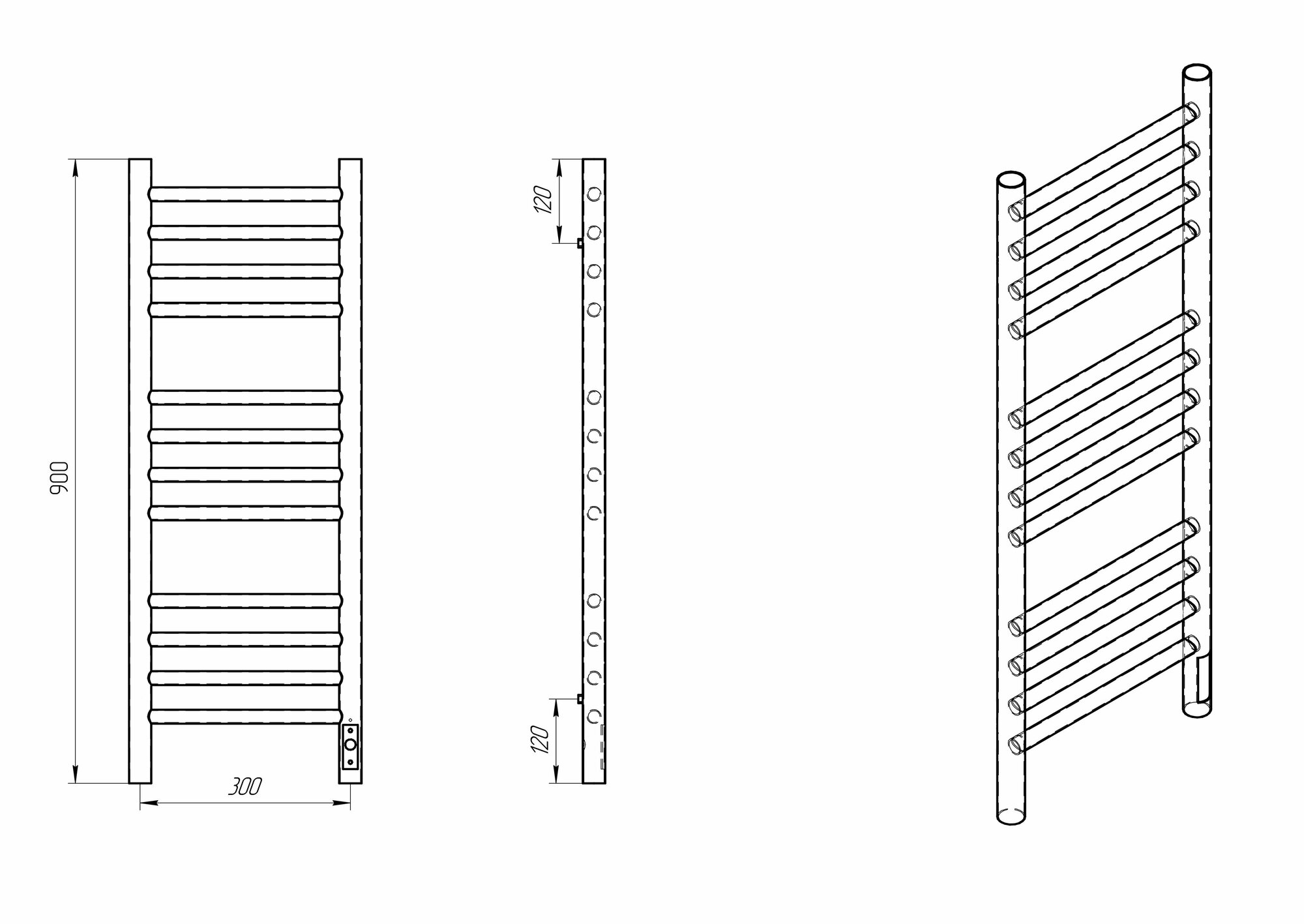 Полотенцесушитель электрический Laris Лаванда ЧКЧ П12 300х900 черный матовый, правый (73207623)