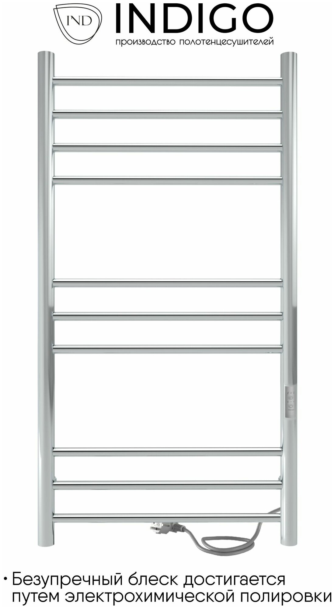 Полотенцесушитель электрический INDIGO Line Trinity 100/50 таймер, скрытый монтаж, универсальное подключение, Полированный