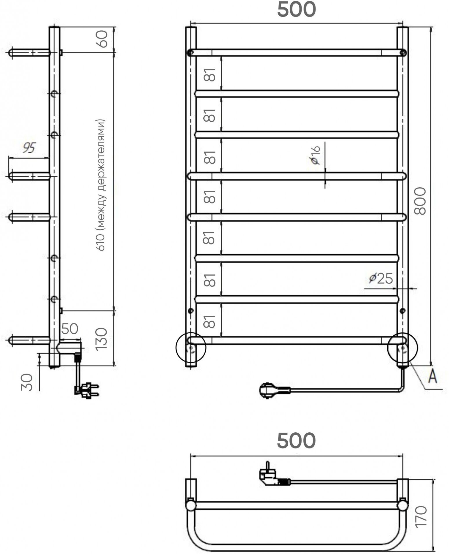 Полотенцесушитель Электрический Тругор Пэк сп 5 П 60х50 черный ВГП