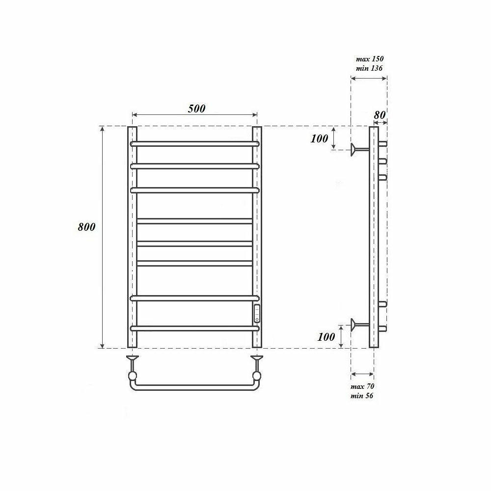 Полотенцесушитель электрический 500x800 POINT Вега (PN71858 П9) диммер справа