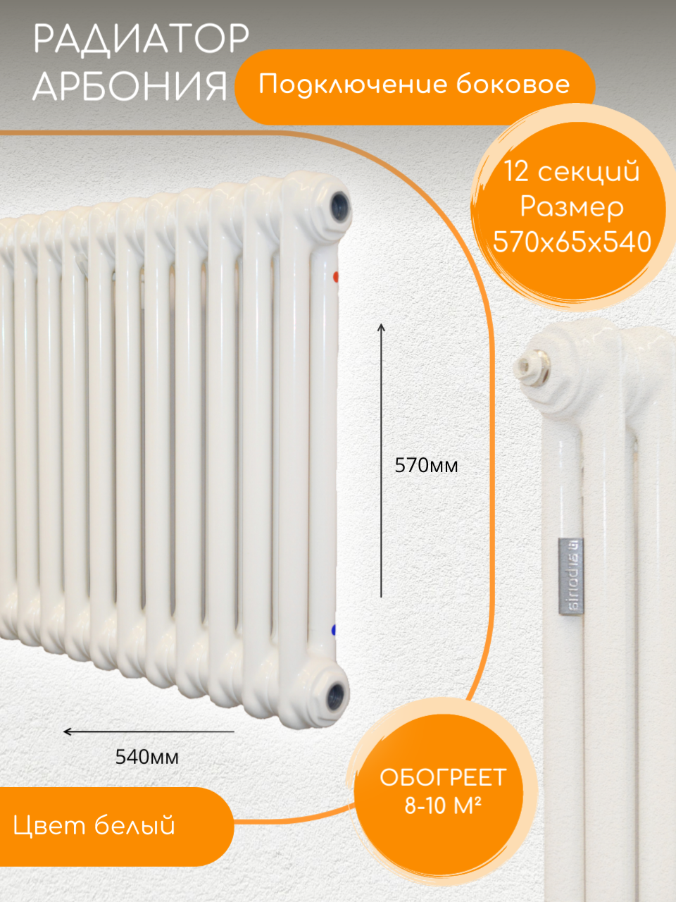 Стальной трубчатый Радиатор Arbonia 2057, Боковое подключение; Количество секций: 12 Цвет: Белый интересное: