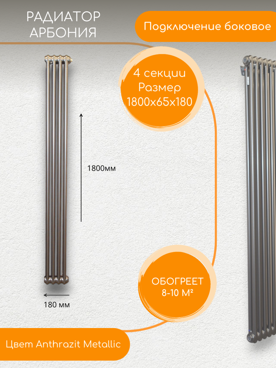 Стальной трубчатый Радиатор Arbonia2180, Боковое подключение, Колличество секций : 4 Anthrazit Metallic интересное: