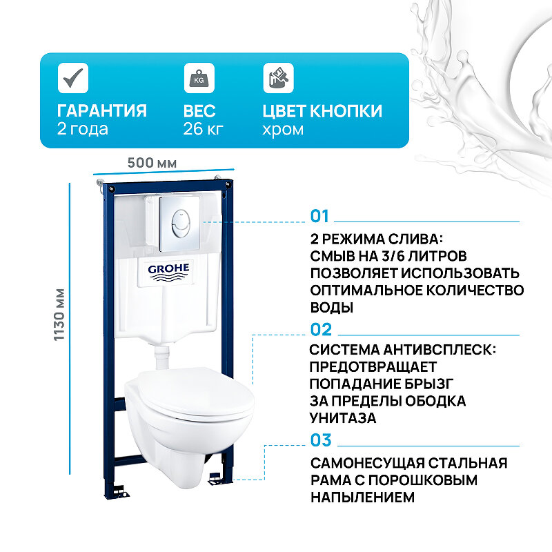 Комплект Grohe Solido 39192000 унитаз + инсталляция + клавиша