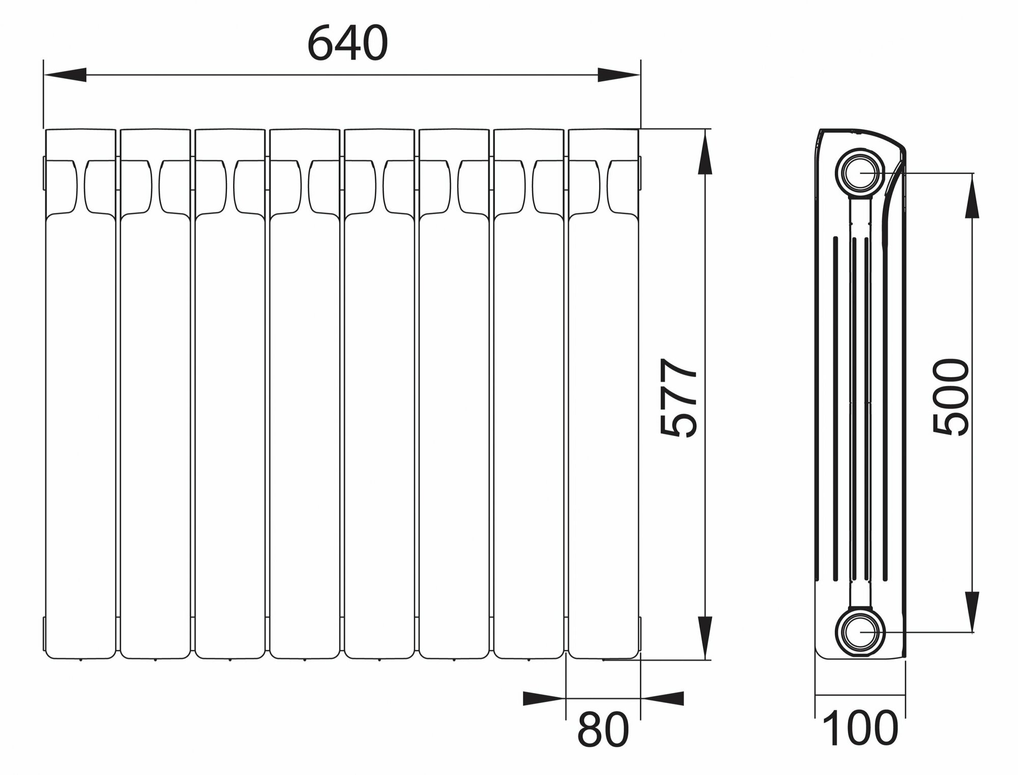 RIFAR Радиатор биметаллический MONOLIT Ventil 500 08 секц. нижн. прав. R-MN-500-08-VR
