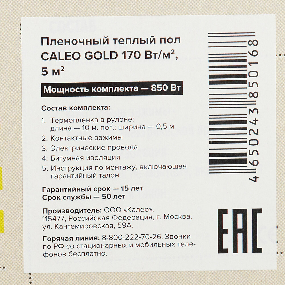 Калео Голд теплый пол пленочный 850Вт (5 кв.м) / CALEO Gold теплый пол пленочный инфракрасный 170Вт/850Вт (5 кв.м)