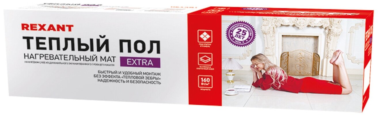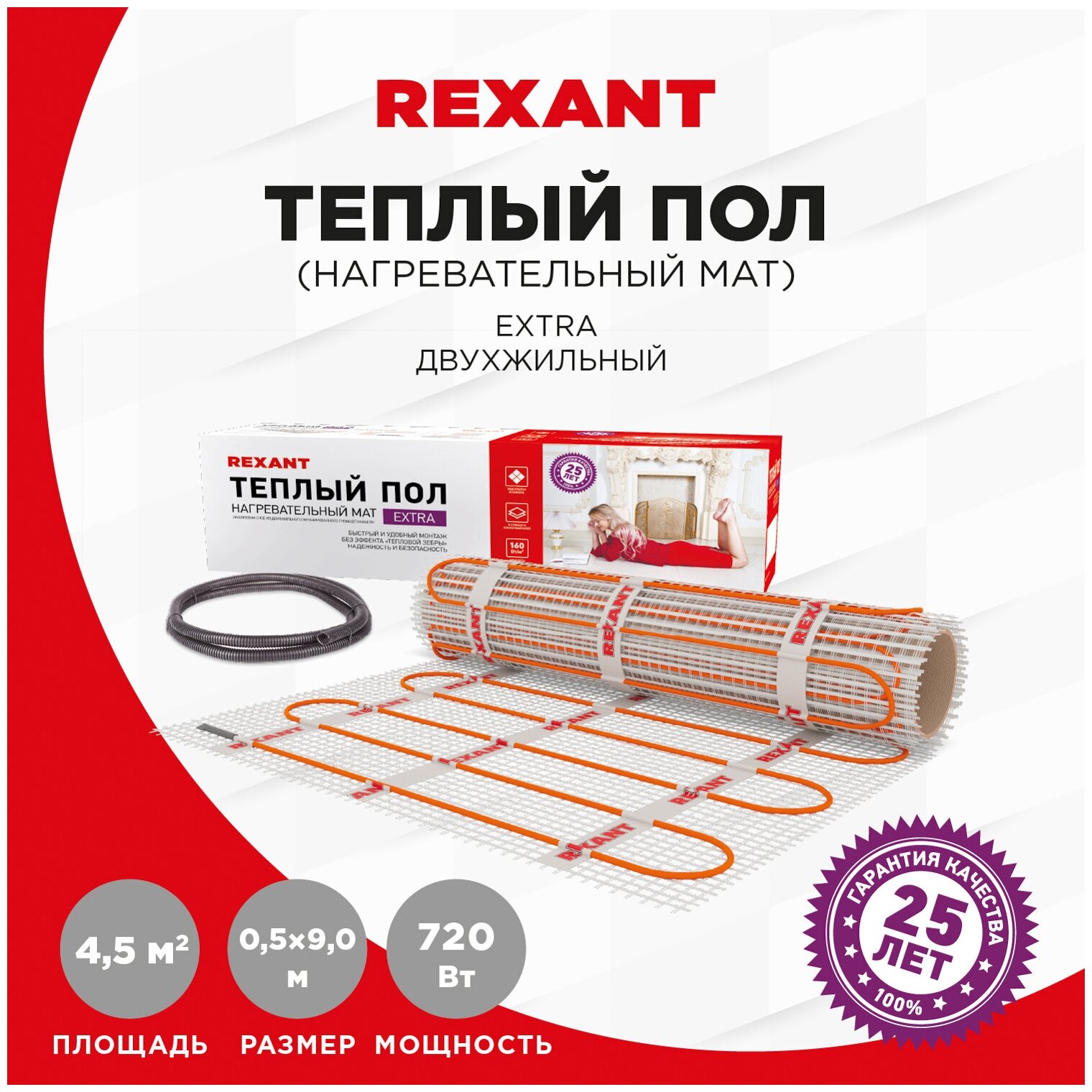 Теплый пол (нагревательный мат) Rexant Extra (4.5 кв. м, 0.5х9.0 м, 720 Вт)