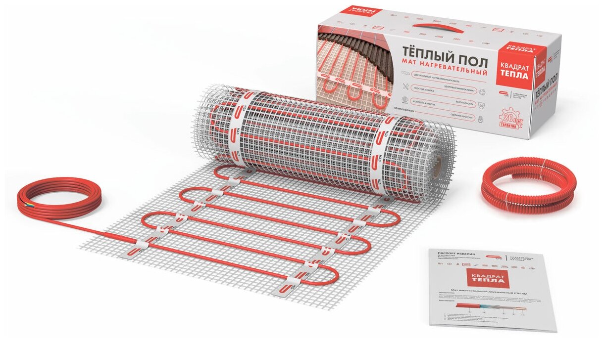 СТН Квадрат тепла КМ нагревательный мат 1500Вт (10 кв.м) / СТН Квадрат тепла КМ теплый пол нагревательный мат 150Вт/1500Вт (10 кв.м)