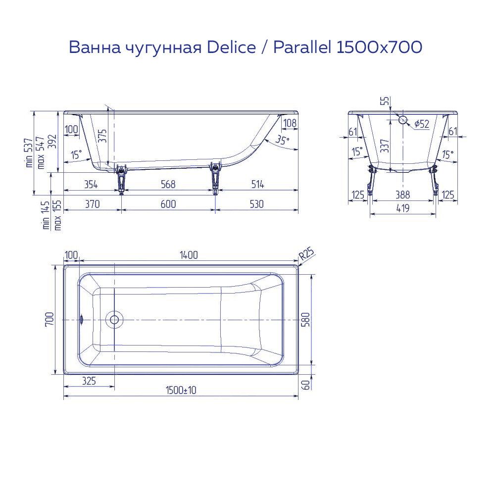 Ванна чугунная Delice Parallel 150х70 DLR220503