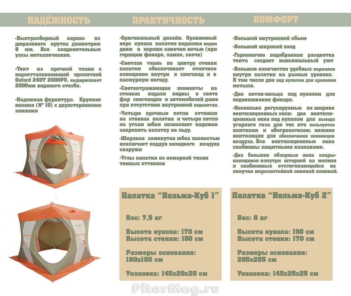 Палатка для зимней рыбалки Митек Нельма Куб-1 (оранжевый-бежевый/хаки) интересное: