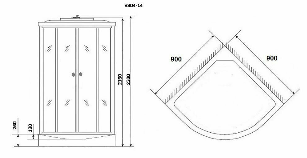 Кабина душевая NG- 3304-14 (900х900х2150) низкий поддон(26см) стекло матовое 4 места