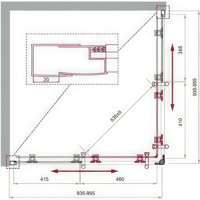UNO-195-A-2-95-P-Cr Душевой уголок