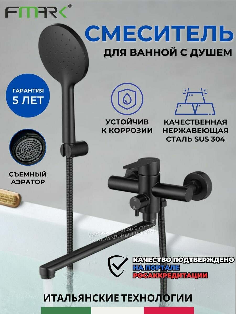 Fmark Смеситель для ванны универсальный FS8224H черный матовый Fmark