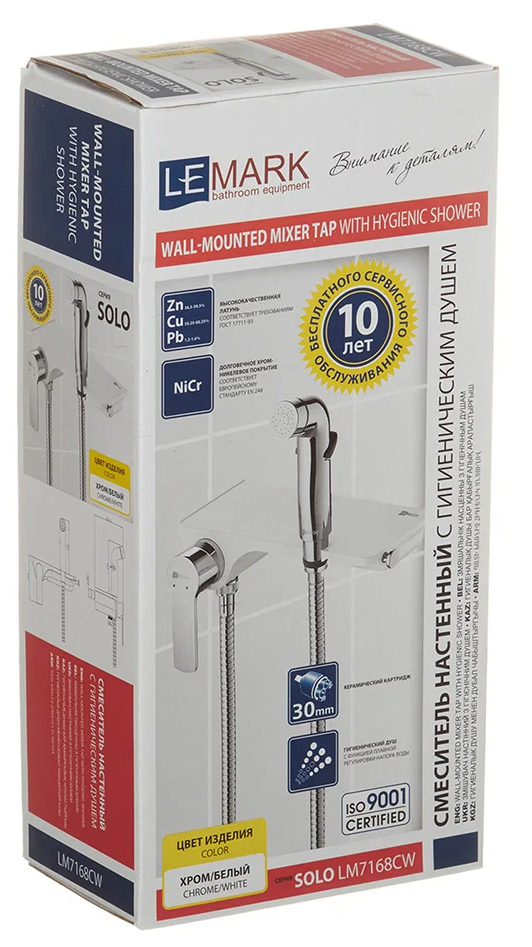 Смеситель Lemark Solo LM7168CW с гигиеническим душем, настенный