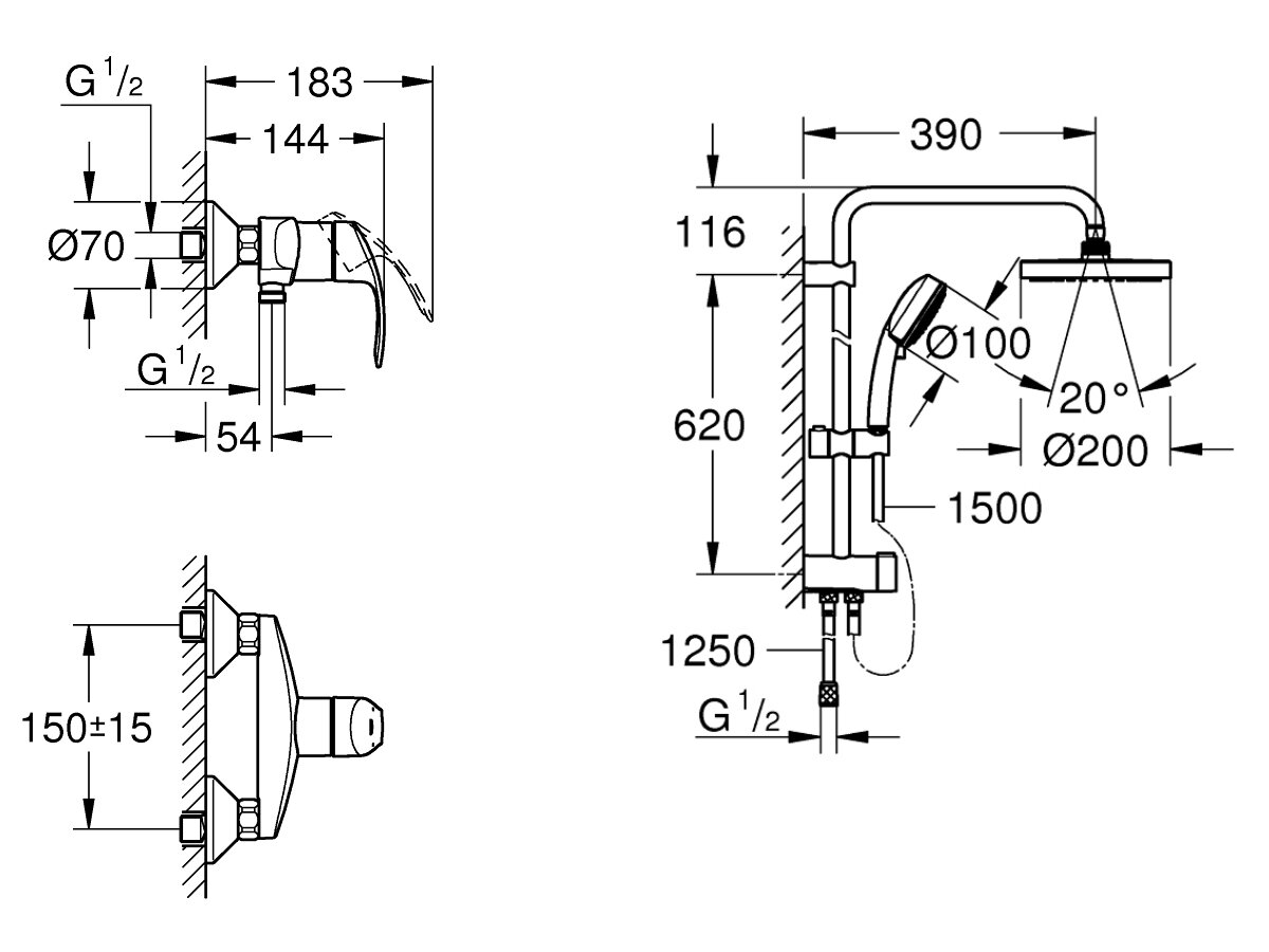 Душевая система Grohe Eurosmart со смесителем, хром (124410)