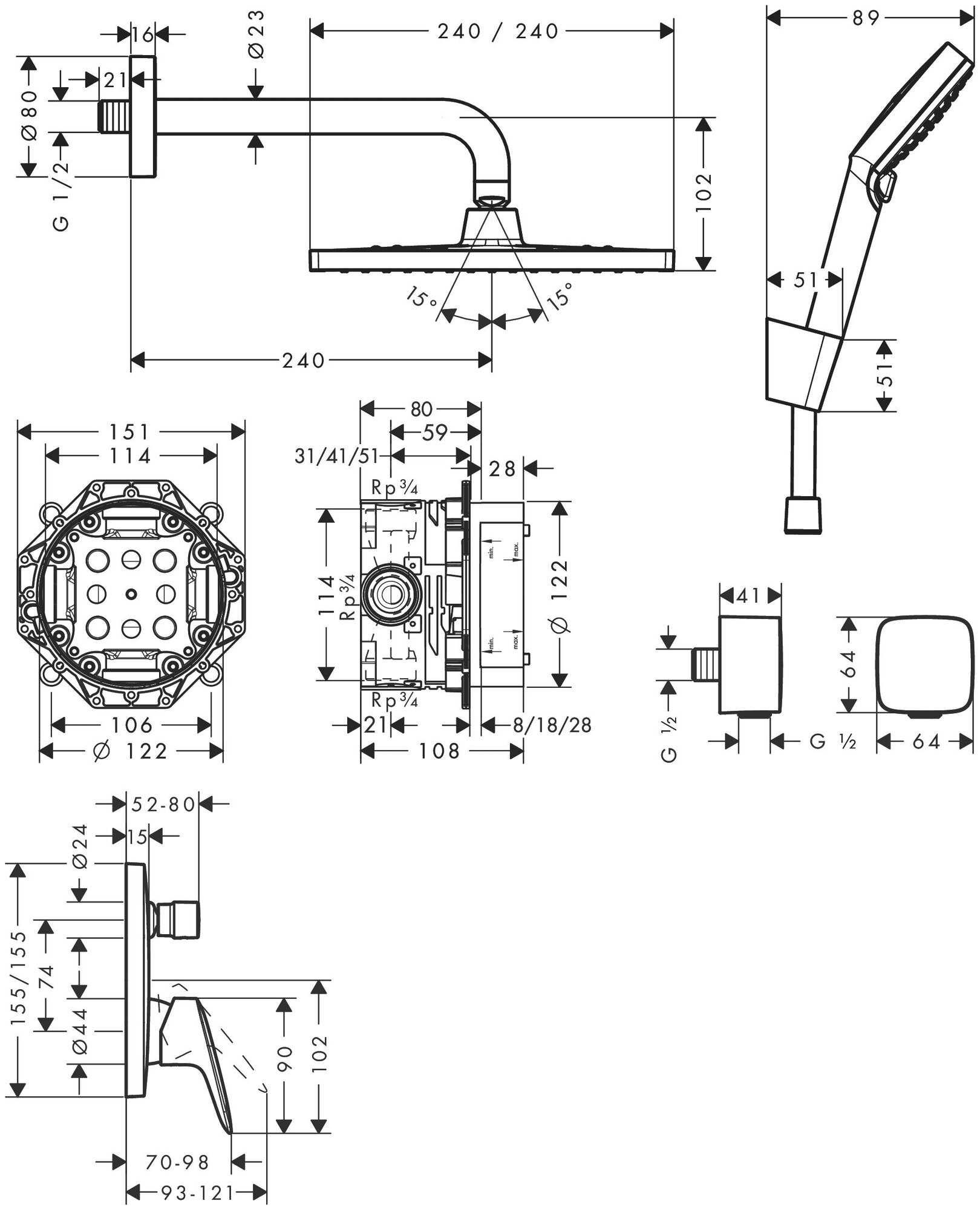 Душевой комплект Hansgrohe 240 1jet 27957000
