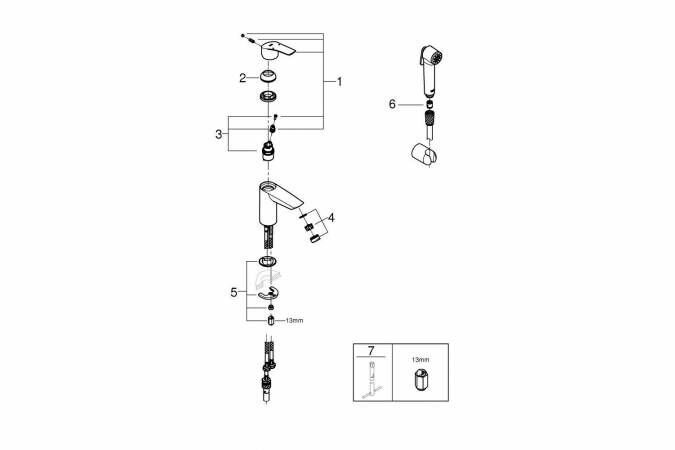 Смеситель для раковины без донного клапана с гигиеническим душем Grohe Eurosmart 23124003
