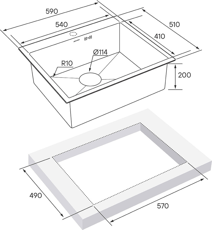 Мойка нерж. сталь BRIM, PM215951-BS, брашированная нерж. сталь, 590х510мм, Paulmark