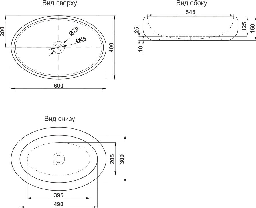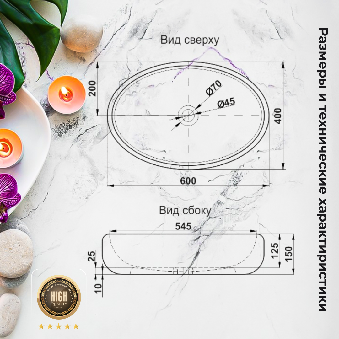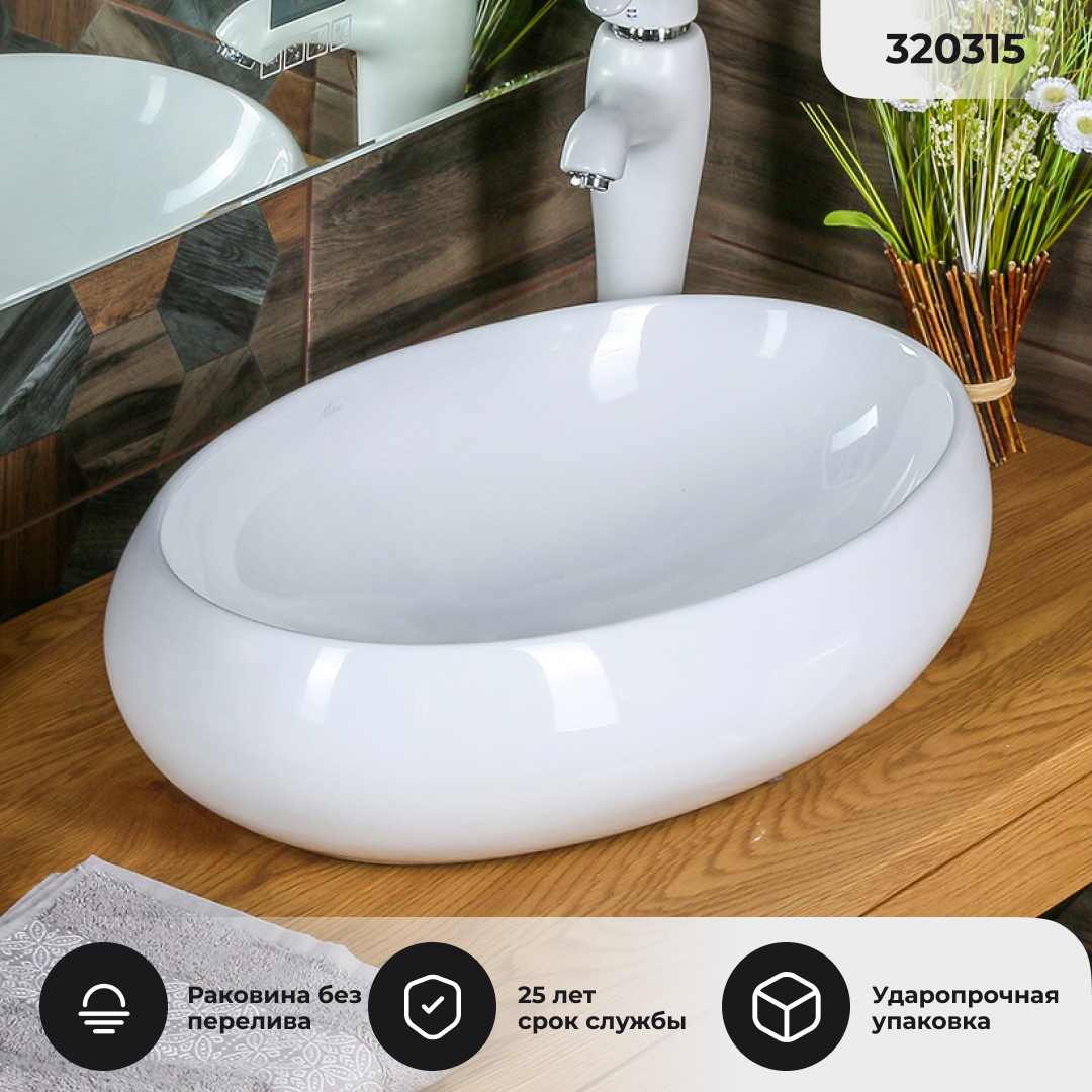 Раковина Melana MLN-320315, овальная, накладная, фаянс, белая, 60х40х15 см