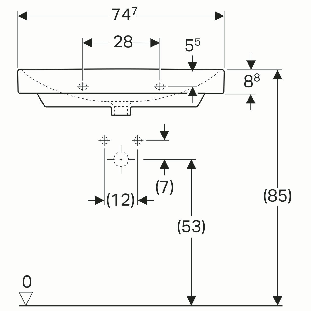 Раковина Geberit Smyle Square (750х480х165) подвесная, с отв. под смеситель и переливом 500.249.01.1