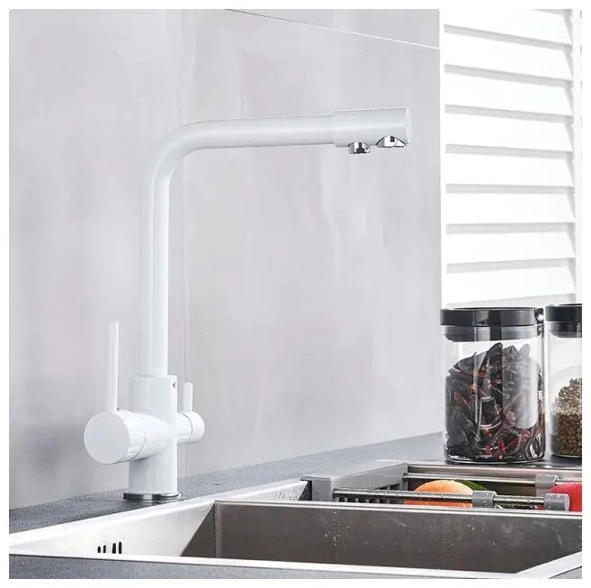 Смеситель для кухонной мойки с фильтром питьевой воды D-Lin, белый интересное: