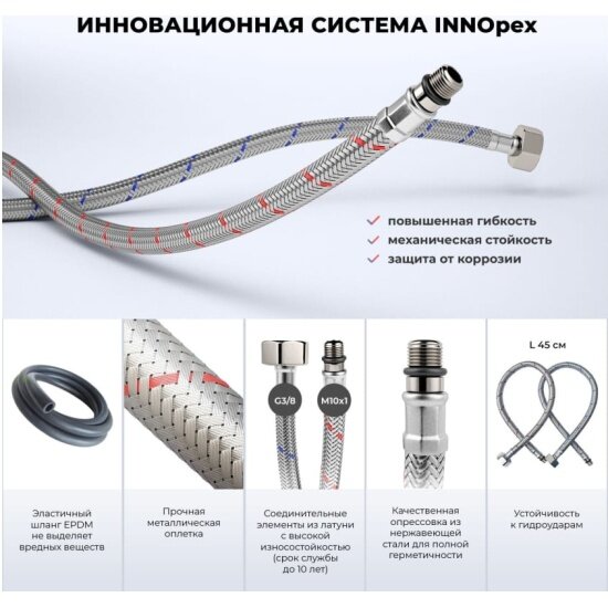 | Комплектация | 1 x смеситель для раковины; 2 х гибкая подводка для подключения смесителя, 45 см; 1 x инструкция по монтажу и эксплуатации; 1 x гарантийный талон. |