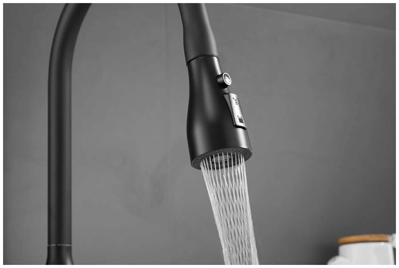 Смеситель для кухни с выдвижной лейкой душ Shevanik S163H черный интересное:
