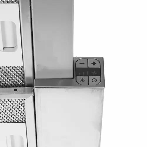 Выдвижная часть заметно отвисает. Заказали шкаф на кухне ровно на 4 см короче, чем остальные, по чертежам вытяжки. Но она висит ниже в итоге. Еще неудобно, что для управления нужно выдвигать панель, даже, чтобы свет включить. В итоге обычно она висит, чуть выдвинутая. |