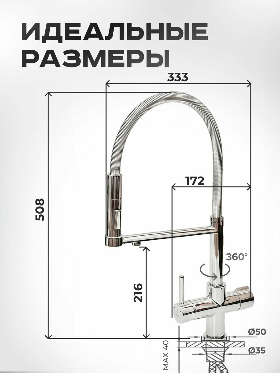 СохранитьСмеситель для кухни с гибким изливом и подключением фильтра Rose R758 интересное: