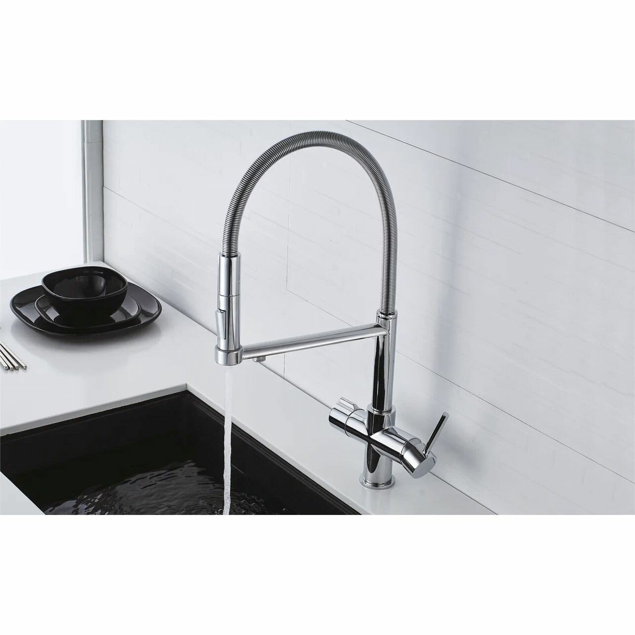 Смеситель Rose R758 для кухонной мойки с гибким изливом и подключением к фильтру с питьевой водой, хром