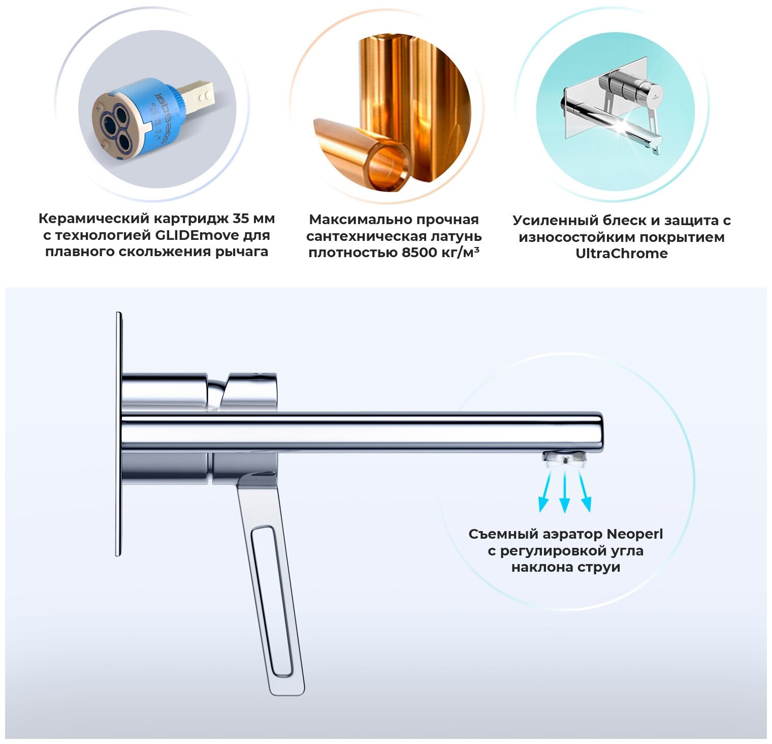 Встраиваемый смеситель для раковины (умывальника) Wellsee ONCE! and forever 182411001: блок скрытого монтажа и внешняя панель (цвет хром) интересное:
