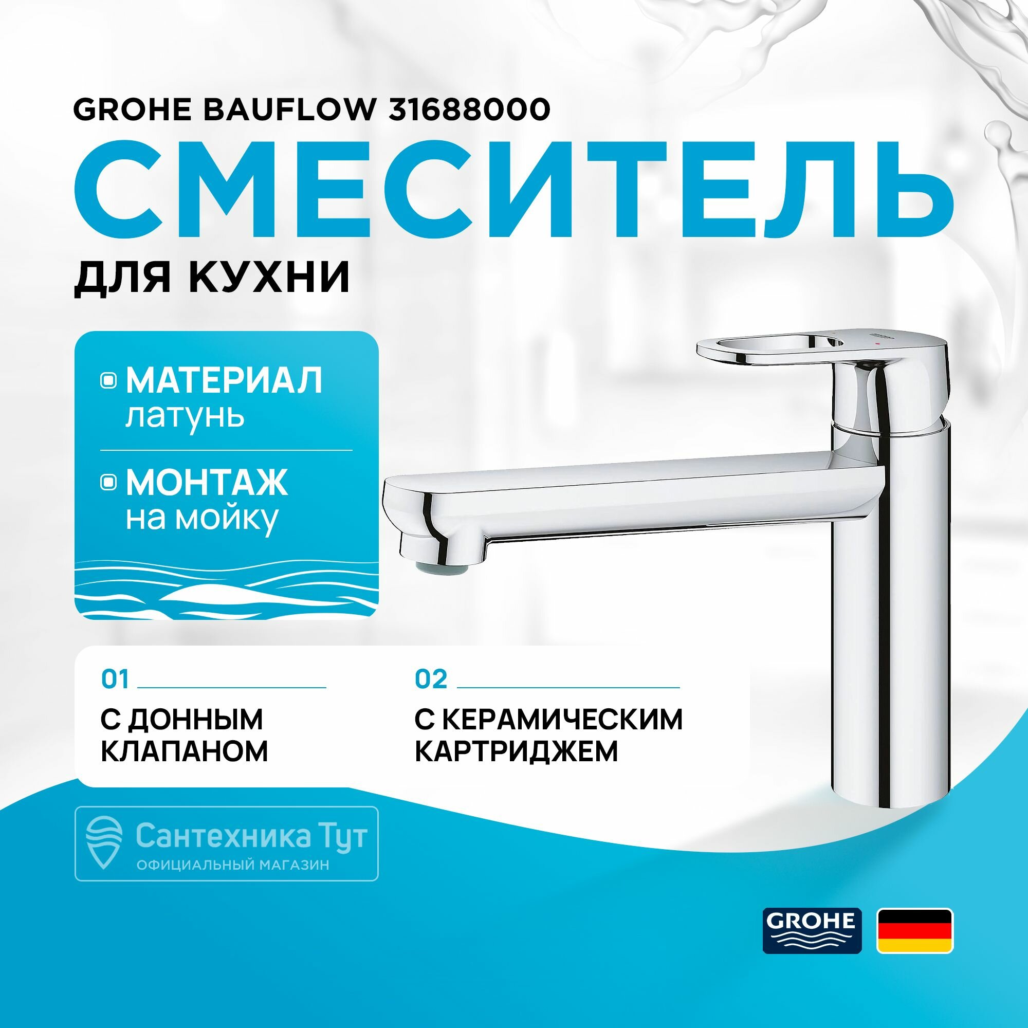 Ниже Вы можете прочитать отзывы на Смеситель для кухни Grohe BauFlow 31688000, ознакомится с подробными характеристиками, посмотреть интересные обзоры и фотографии на Смеситель для кухни Grohe BauFlow 31688000.