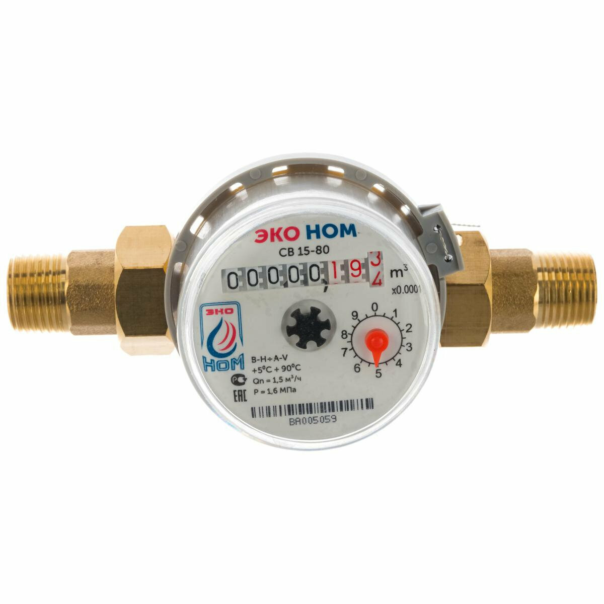 | Дополнительная информация | "Счетчик, комплект монтажных частей, обратный клапан: Счетчик воды Эко Ном - 1 шт. Защитный колпачок - 2 шт. Паспорт - 1 шт. Упаковка - 1 шт. Пломбировочная проволока наклейки (красная, синяя) - 1 шт. Штуцер - 2 шт. Гайка - 2 шт. Прокладка - 2 шт. Обратный клапан - 1 шт." |
