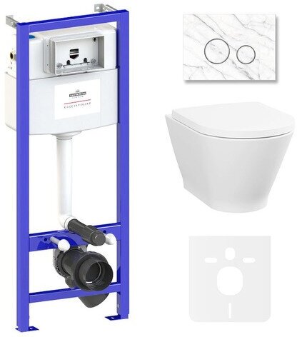 Купить Комплект 6 в 1 Lavinia Boho Elegant Rimless 87561087, безободковый унитаз, сиденье микролифт, инсталляция, клавиша смыва, шумоизоляция